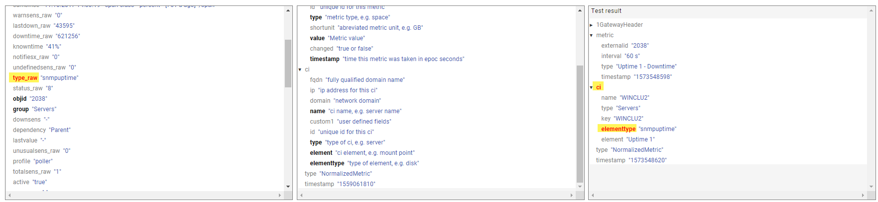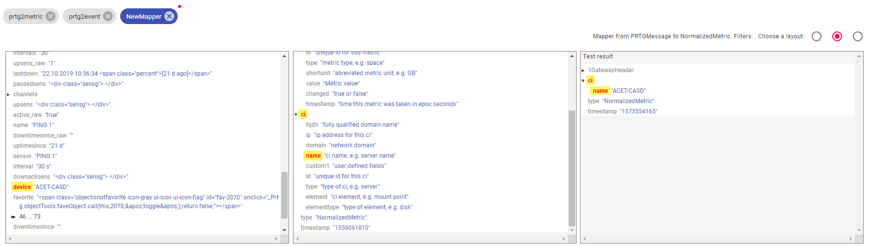 In the Test result row you can now see the result of the defined mapping.
