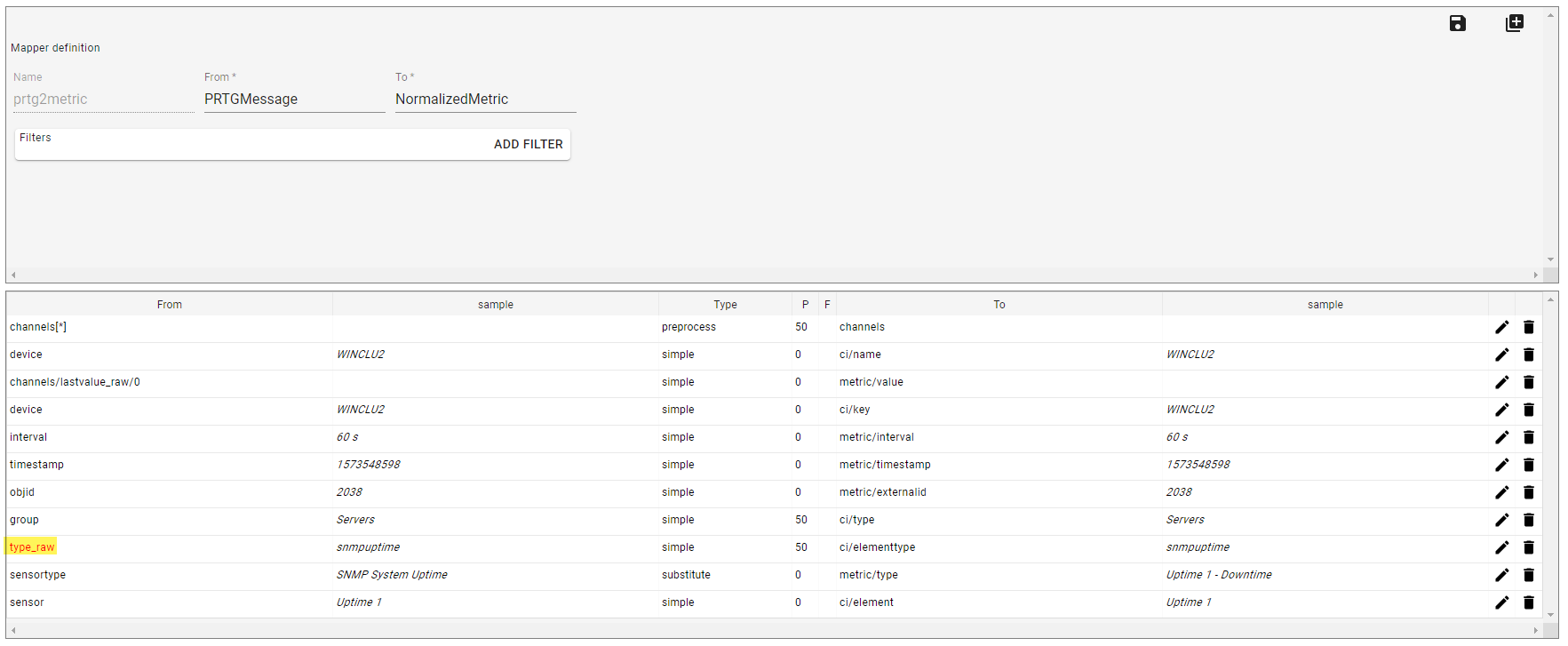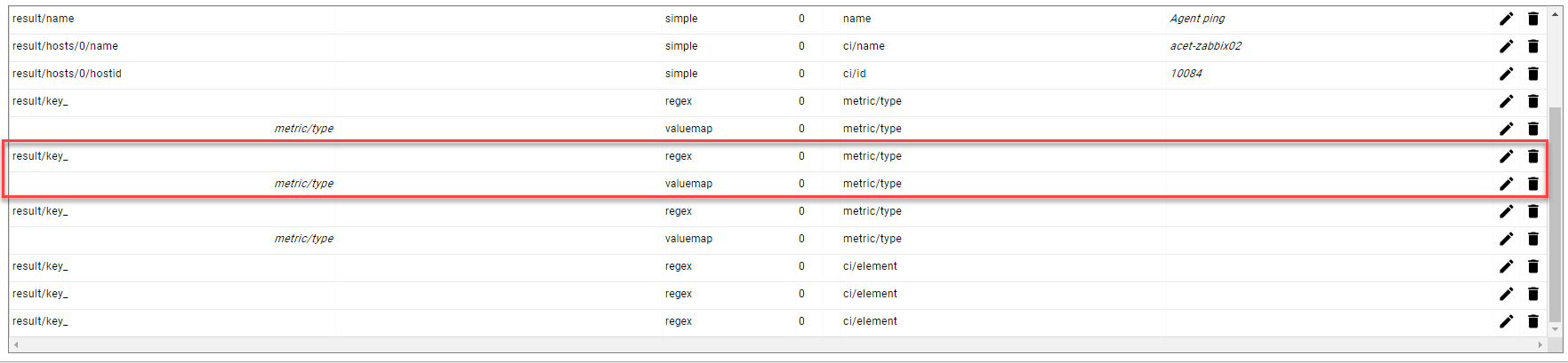 To edit an existing mapping click on the pencil icon in a mapping row.