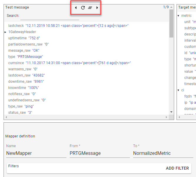 - Clear Messages in the Test Message row and fetch messages again. And choose a message to define mapper definitions.