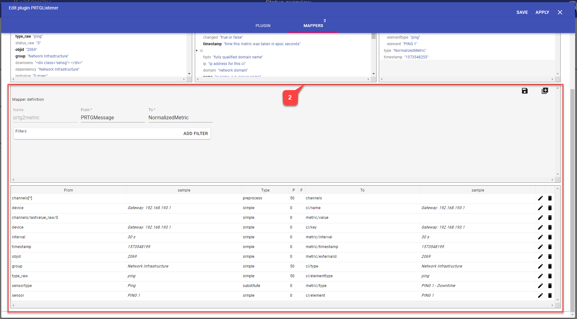- Click on the mapper you want to modify and start change mapper parameters