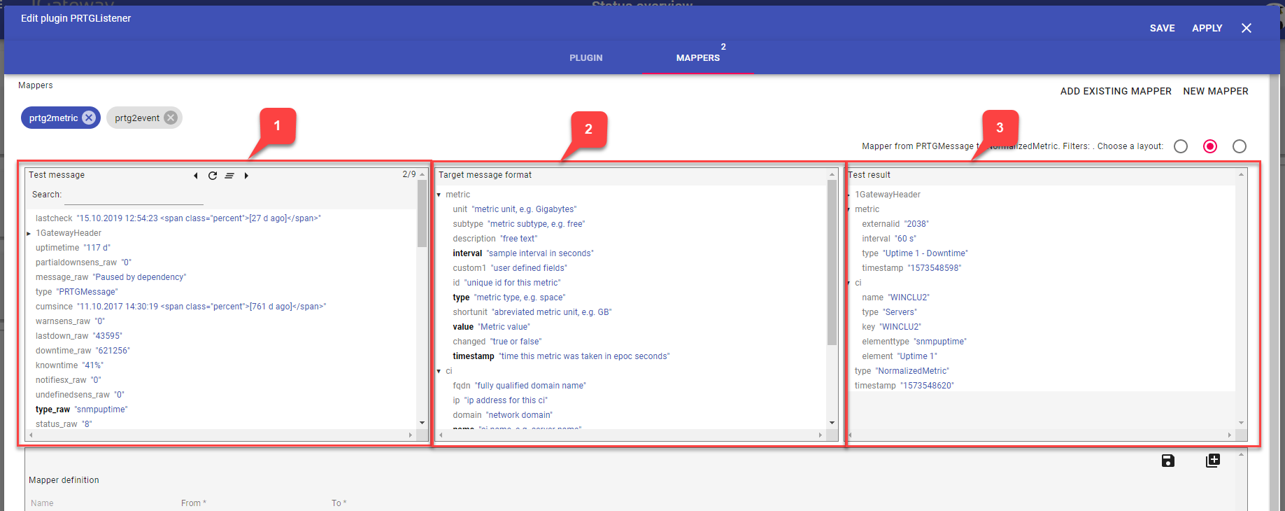 - Test result (Test Message after applying the mapper)