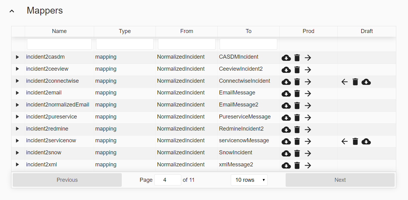 Mappers convert messages from one type to another. They define the translations between different message types, usually between a product-specific message and one or more normalized message formats. Mappers contain mappings, that define the translation of each field in the message. Mappers can perform calculations, unit conversions, time format conversions, apply regular expressions with capture groups, replace literal strings, etc.