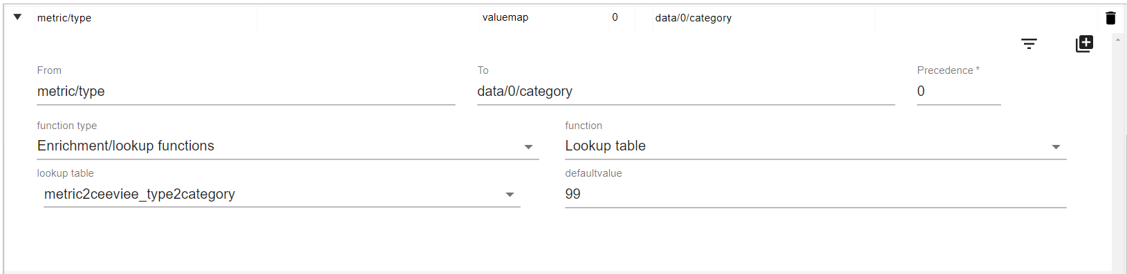 In this example, the metric2ceeview_type2category lookup table is used to translate a metric/type incoming from 1Gateway into a category that CeeView can process.