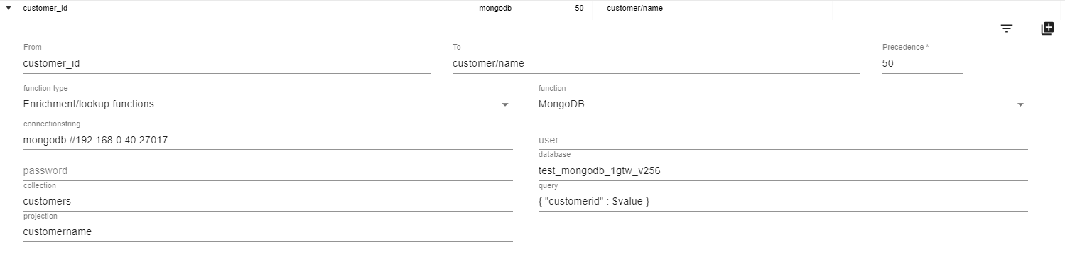 Function | Y | Defines the type of mapping. Needs to be "MongoDB Enrichment". |