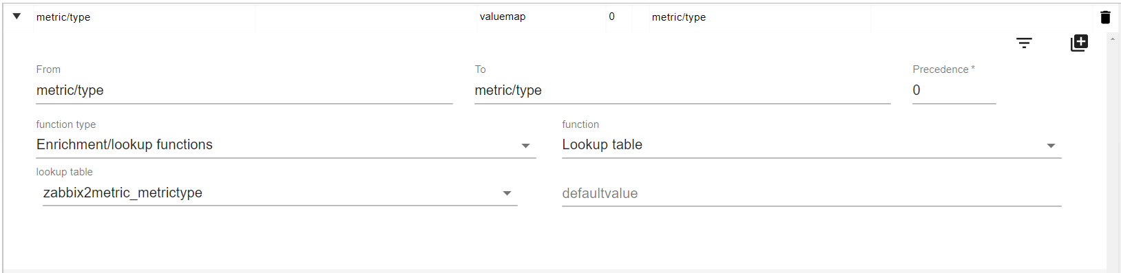 Regex mappings can also have a value map associated, in which case it needs to be nested. Capture groups defined in the regex attribute can be used in the "Replacement string" attribute. The capture groups are numbered with the format "$n$" in the "Replacement string" attribute. Regular expression mappings are very powerful, especially when used in combination with other mappings. For example, the Zabbix API exposes multiple attributes in a single field. To monitor disk space, it produces a value vfs.fs.size[/,free]. Using the mapping definition in the example, this value is parsed and propagated into the fields: