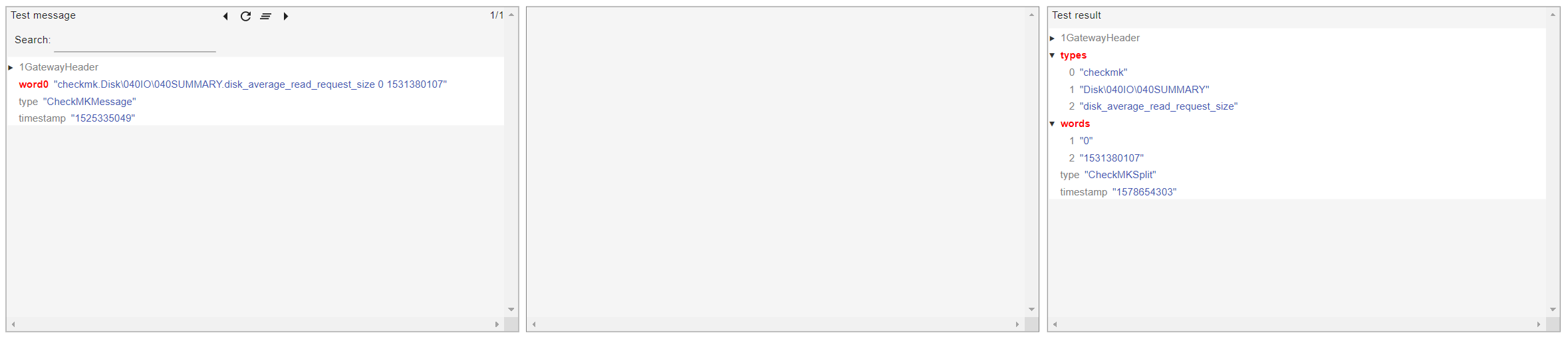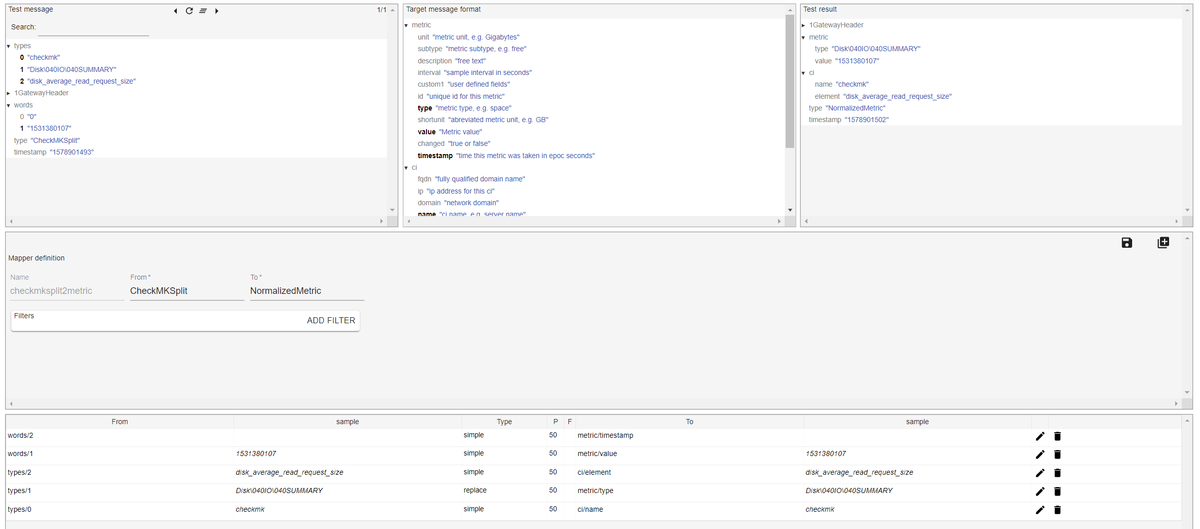 The following example has one string in a Graphite format that needs to be split into the different keys. To do so, we apply a split mapping and a split submapping.