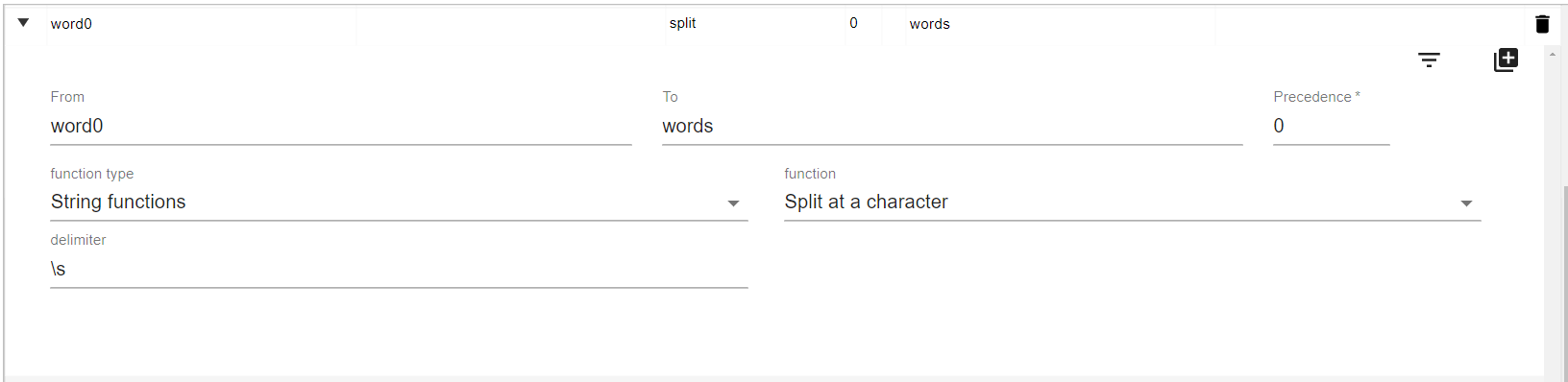 Function | Y | Defines the type of mapping. Needs to be "Split at a character". |