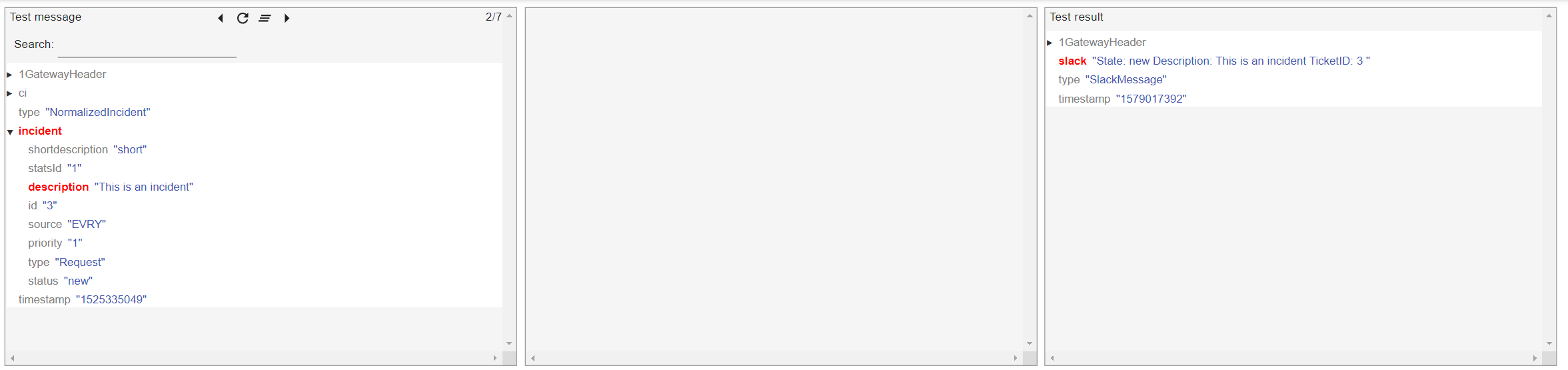 In the example below, we merge multiple fields of a message into one string with the field name "slack". The message fields get populated in the replacewith string and the string gets inserted in the message field "slack".