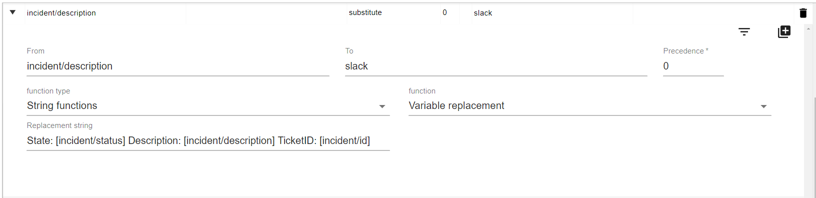 Image 1. Variable replacement mapping that joins multiple fields into a Slack message.