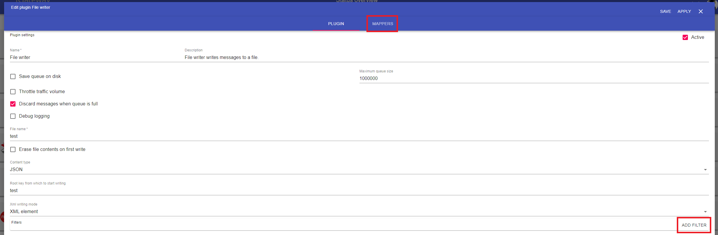 In addition, when in advanced mode you can add new mappers and filters or edit existing ones.