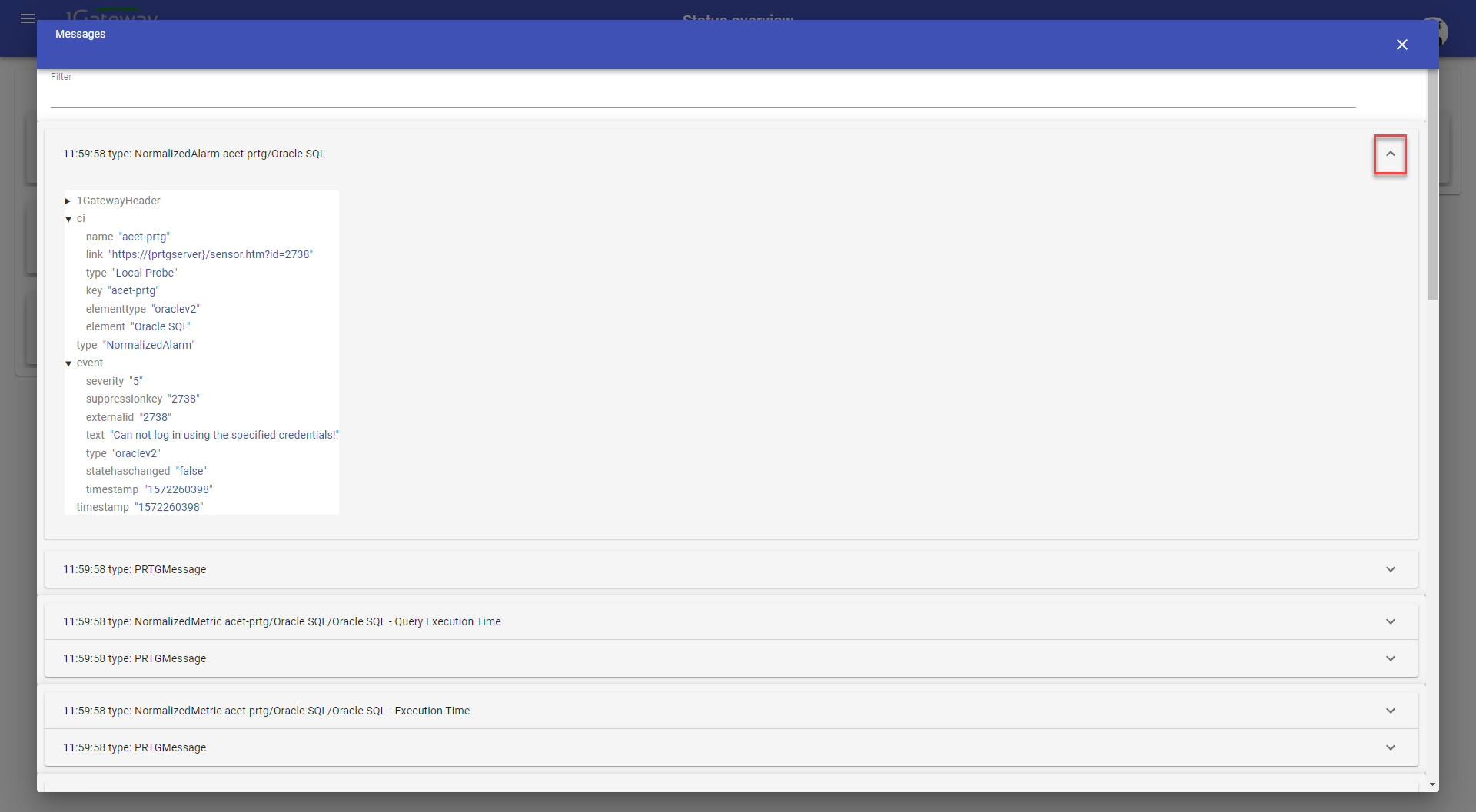Click on the arrow to get details of each message.
