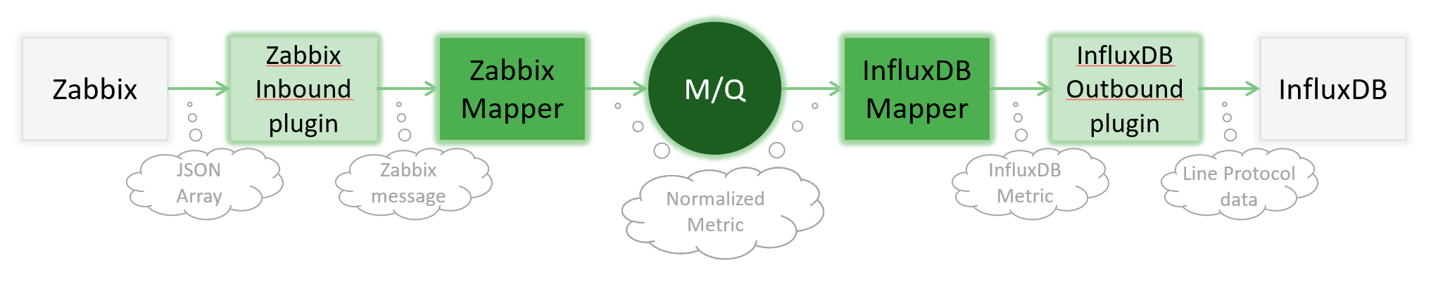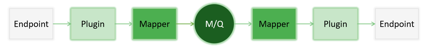 Inbound plugins collect messages from an outside source (endpoint). Incoming messages are normalized and routed to the outbound plugins. Before an outbound plugin forwards a message to its endpoint, it can use a mapper to translate the normalized message into an endpoint-specific format. A "normalized message" is a message that has a format that is not endpoint-specific and contains a minimum standard set of keys. See the messages for more detail. Each outbound plugin has a message queue. When a queue is full, messages are discarded. Queues are drained or saved to disk during graceful shutdown.