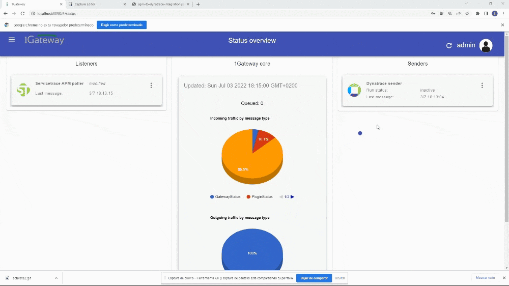 Activate the plugins and confirm that messages are being retrieved from APM Servicetrace by the poller and sent to Dynatrace