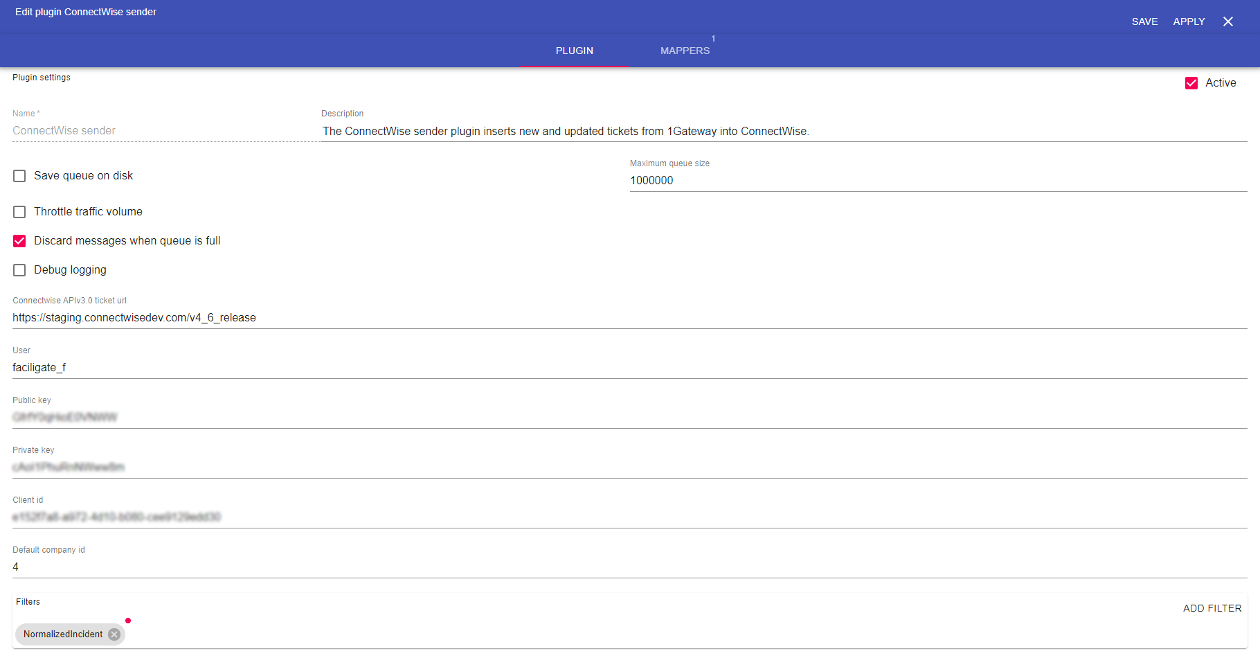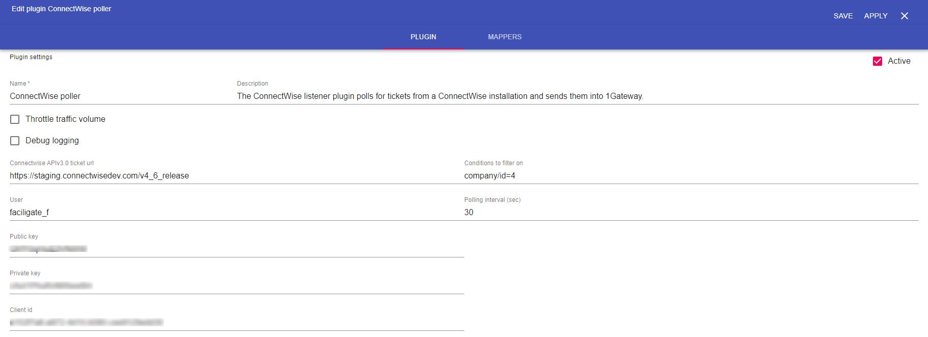 | Private key | Any integer | Private key in ConnectWise |