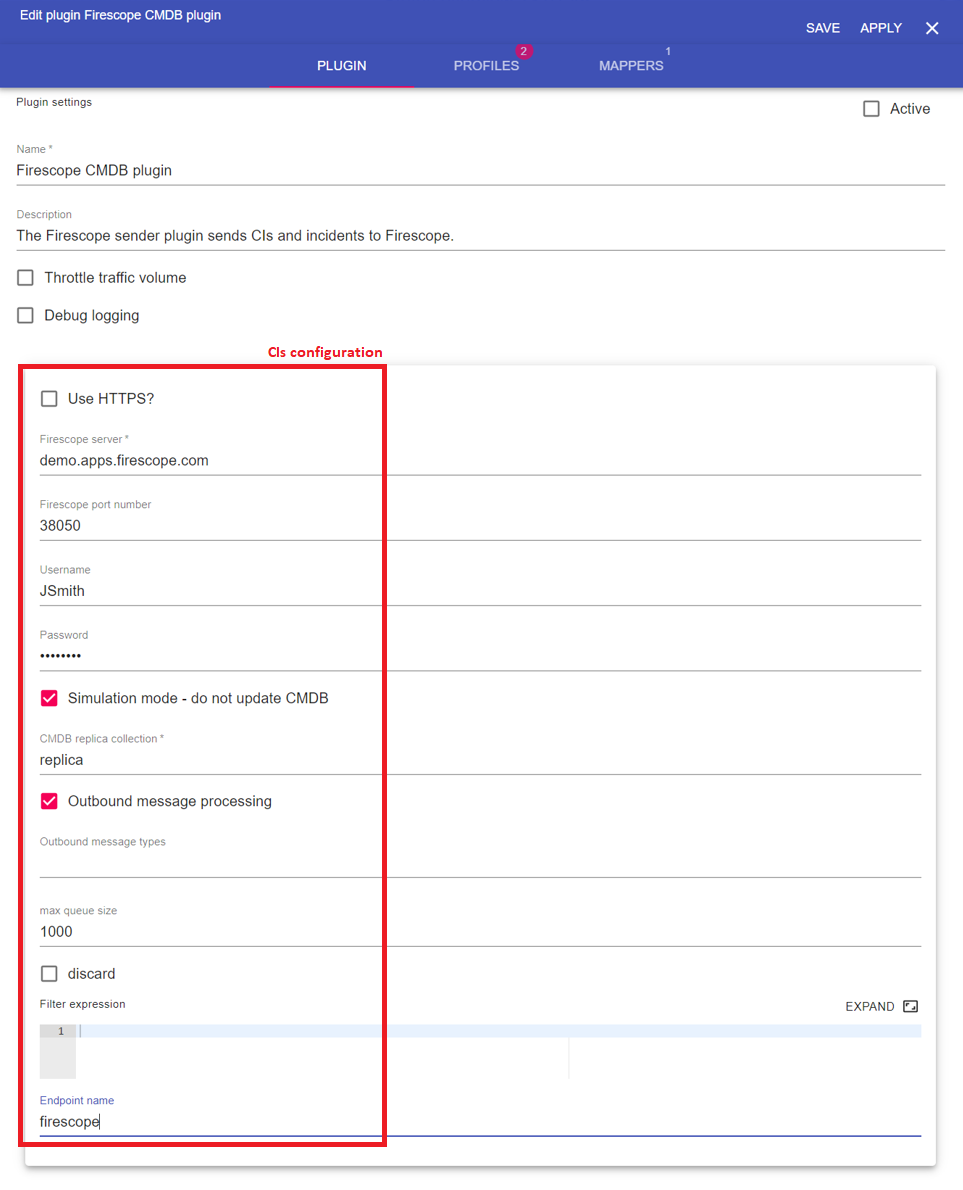 Simulation mode | Tickbox | If in simulation mode, CIs are saved in a simulation collection and are not sent to the CMDB. |