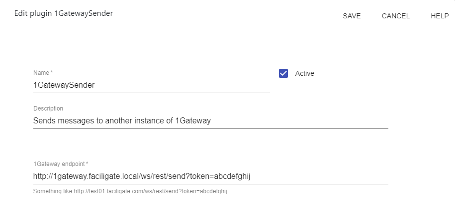 To send metrics and events from one 1Gateway instance to another, configure the endpoint of the second 1Gateway instance. The endpoint will be: http://1gateway-server/ws/rest/send?token=*** The value of the token is an administrator user token.