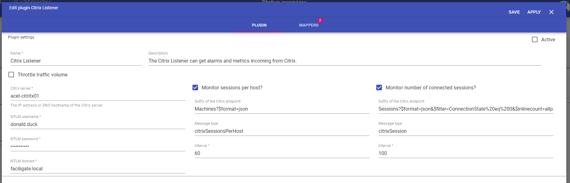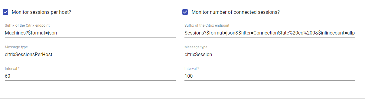 The Citrix configuration consists of the generic fields that every plugin needs as well as the specific Citrix fields: