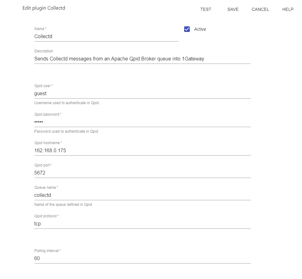 The Collectd plugin processes Collectd messages from a Qpid queue. Collectd sends messages to a Qpid queue (through amqp protocol). The Collectd queue is configured through the Qpid listener (subscriber) plugin.