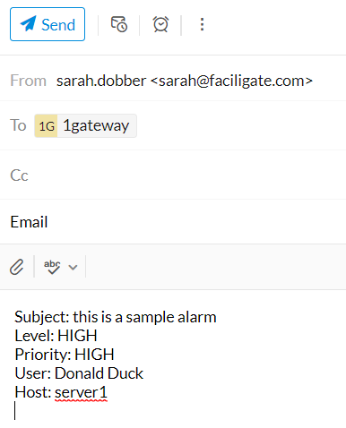 Image 2. Sample delimited email and its configuration in 1Gateway