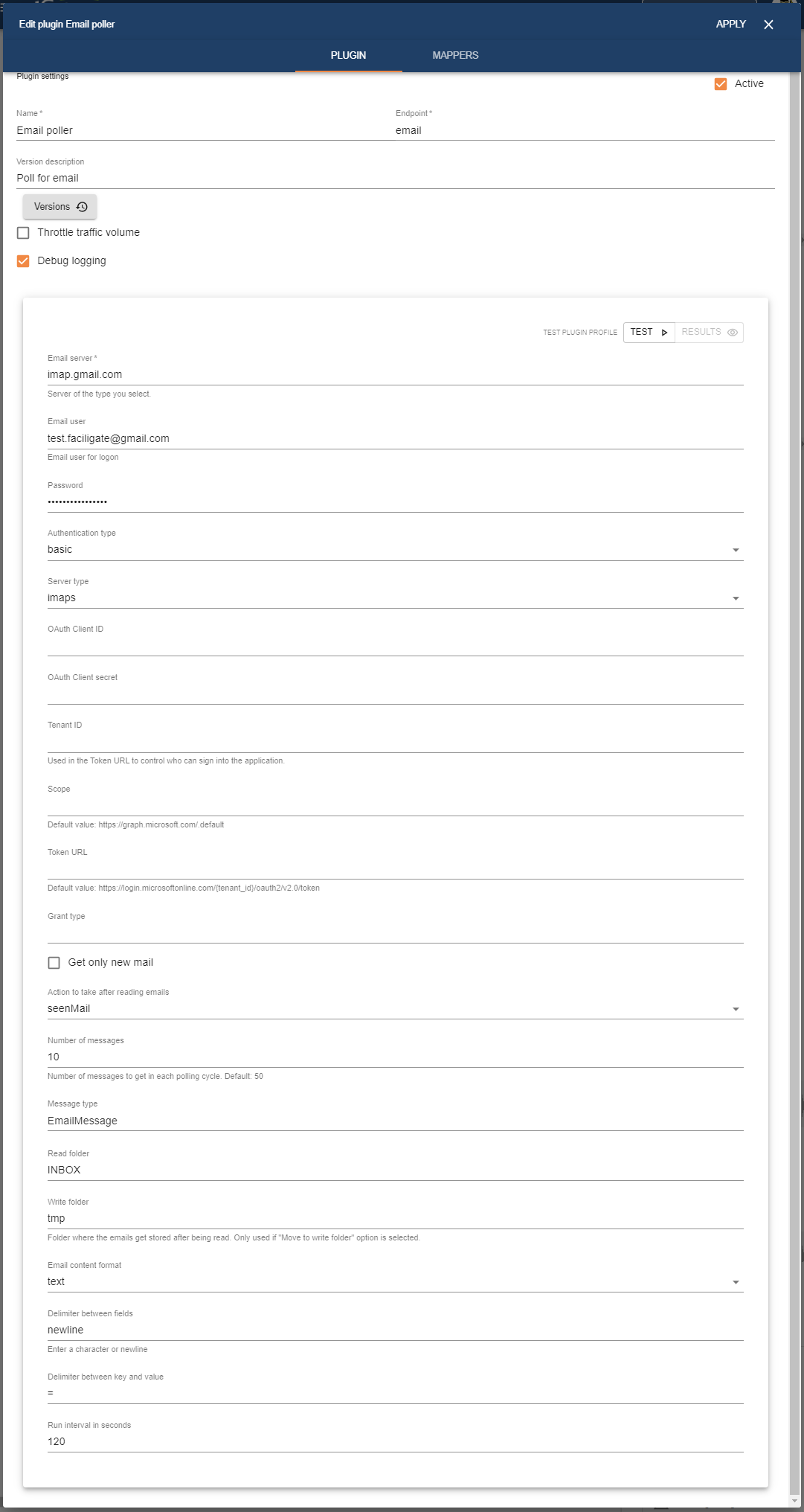 | Get only new mail | true / false | If set to true, only unseen emails will be retrieved by the plugin. Only works on IMAP/s. Only IMAP/s protocol can set search criteria when retrieving mail. |