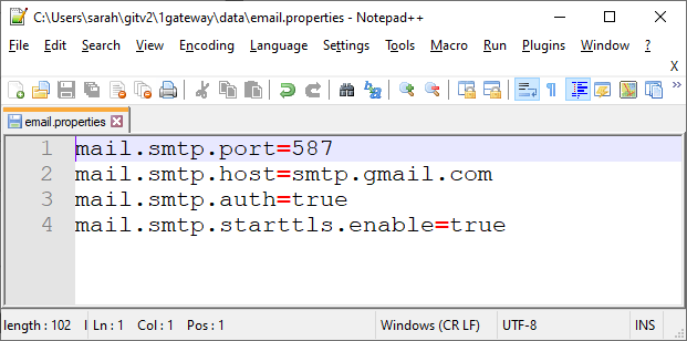 - Port number (mail.smtp.port)