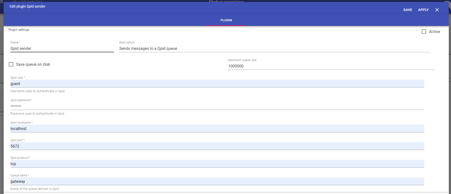 Qpid password | Any string | Password defined in Qpid. |