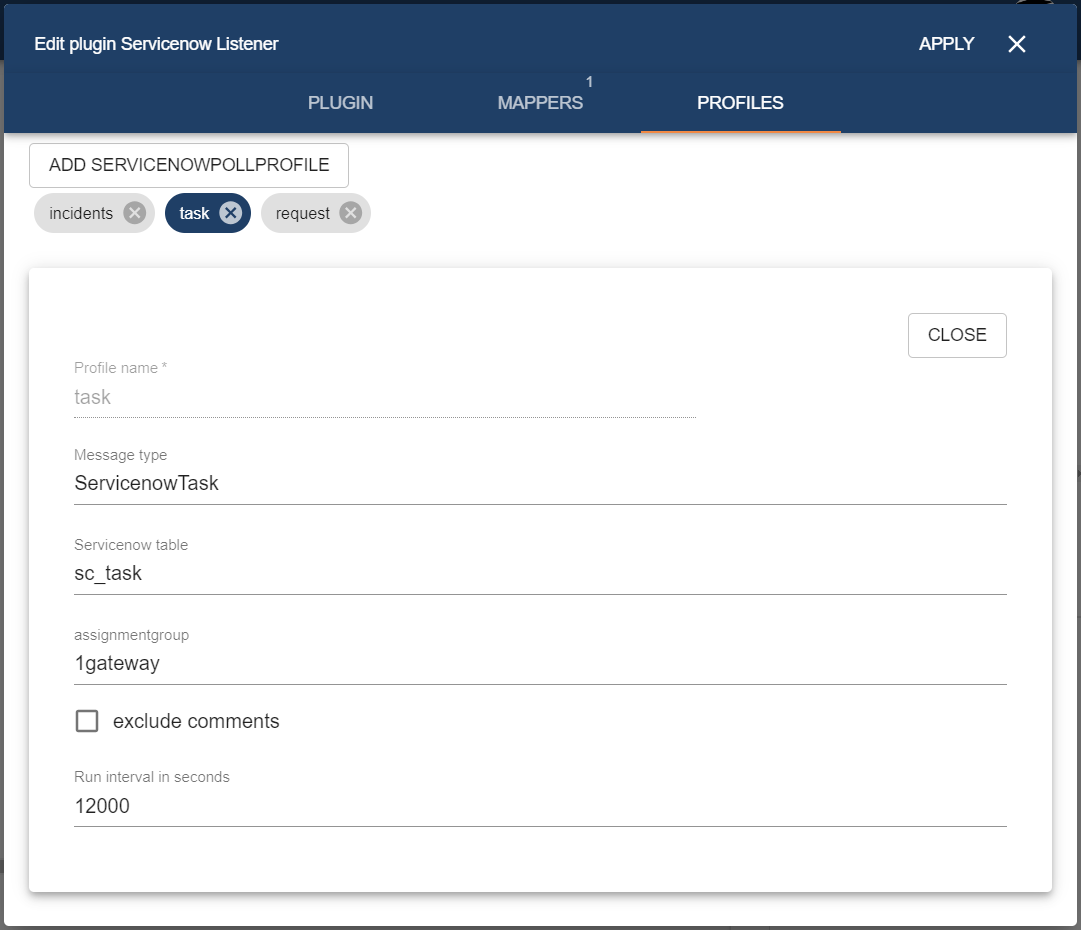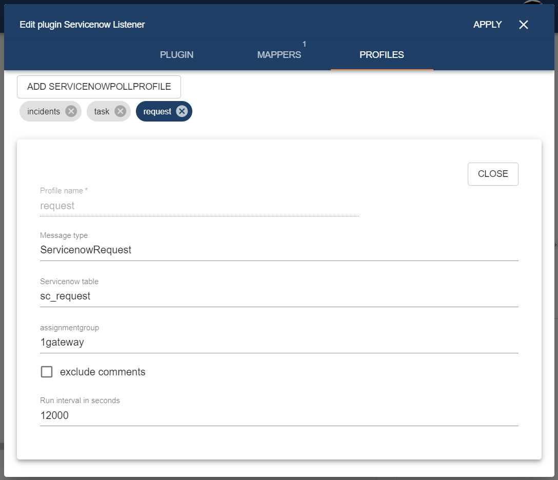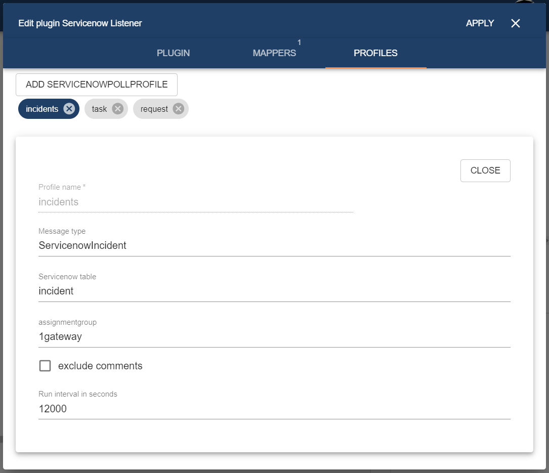 To poll for incidents, tasks and requests, three profiles need to be configured.