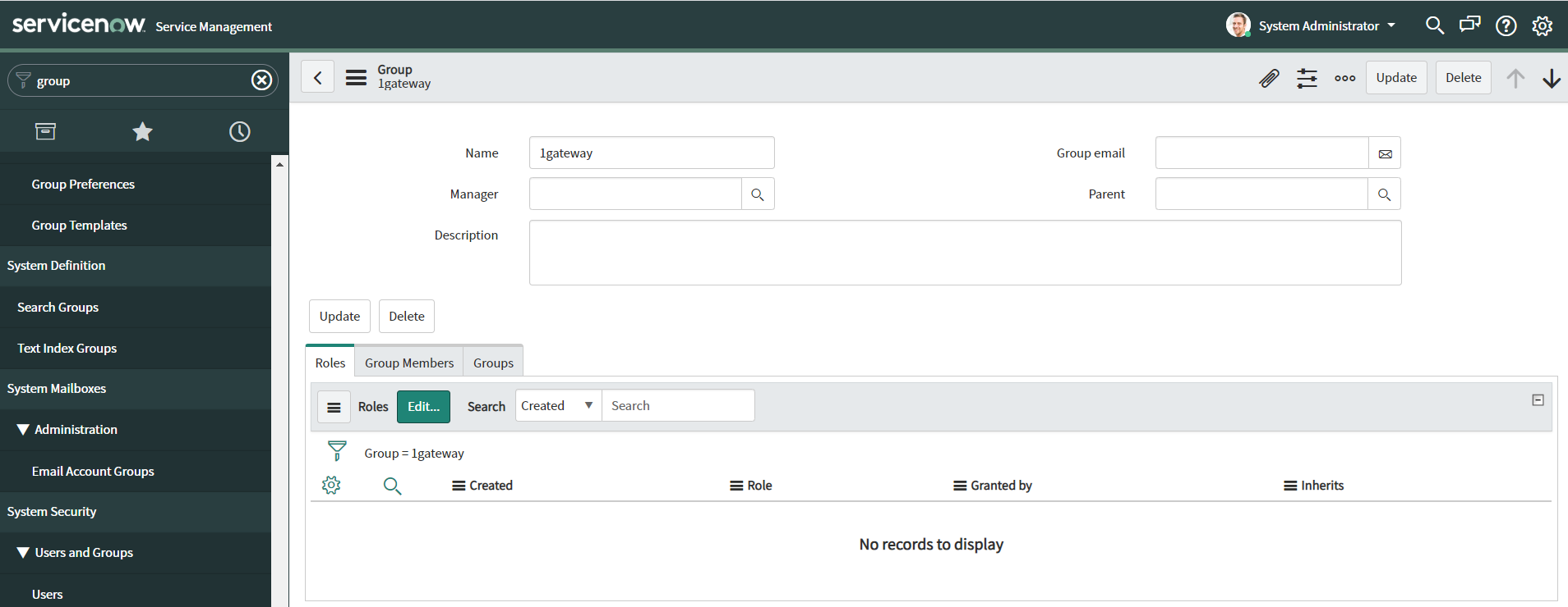 | Assignment group | Any string | Name of the assignment configured in ServiceNow |