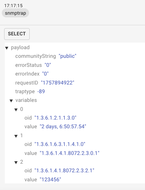 | Send OIDs as values | Tickbox | If true, sends OIDs as message values instead of message fields. See example below. |