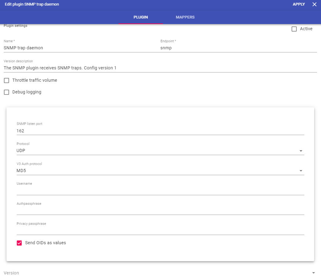 | Privacy passphrase | Any string | SNMP V3 Privacy phrase. |