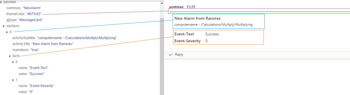 The picture below shows how the mapped example will be displayed in Teams:
