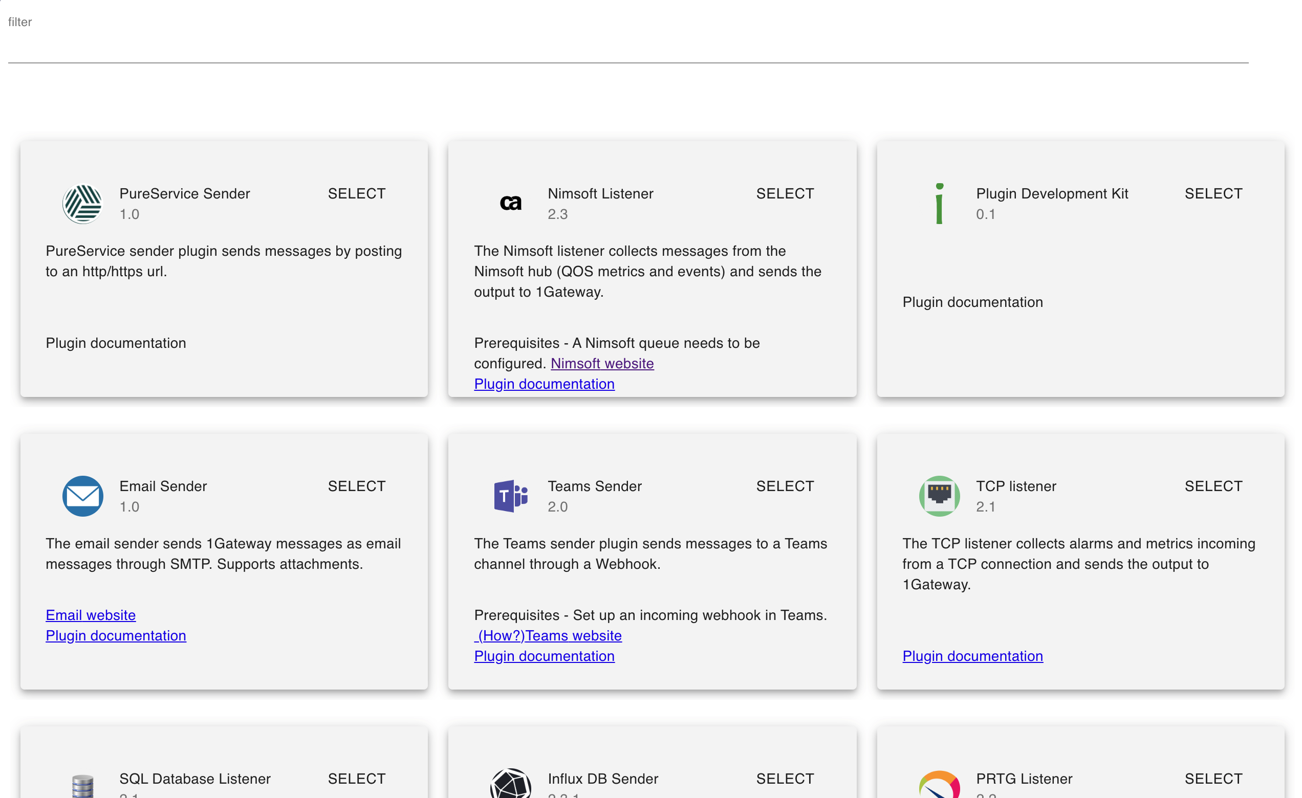 Select the plugin you want to configure. Use the Filter field if needed.