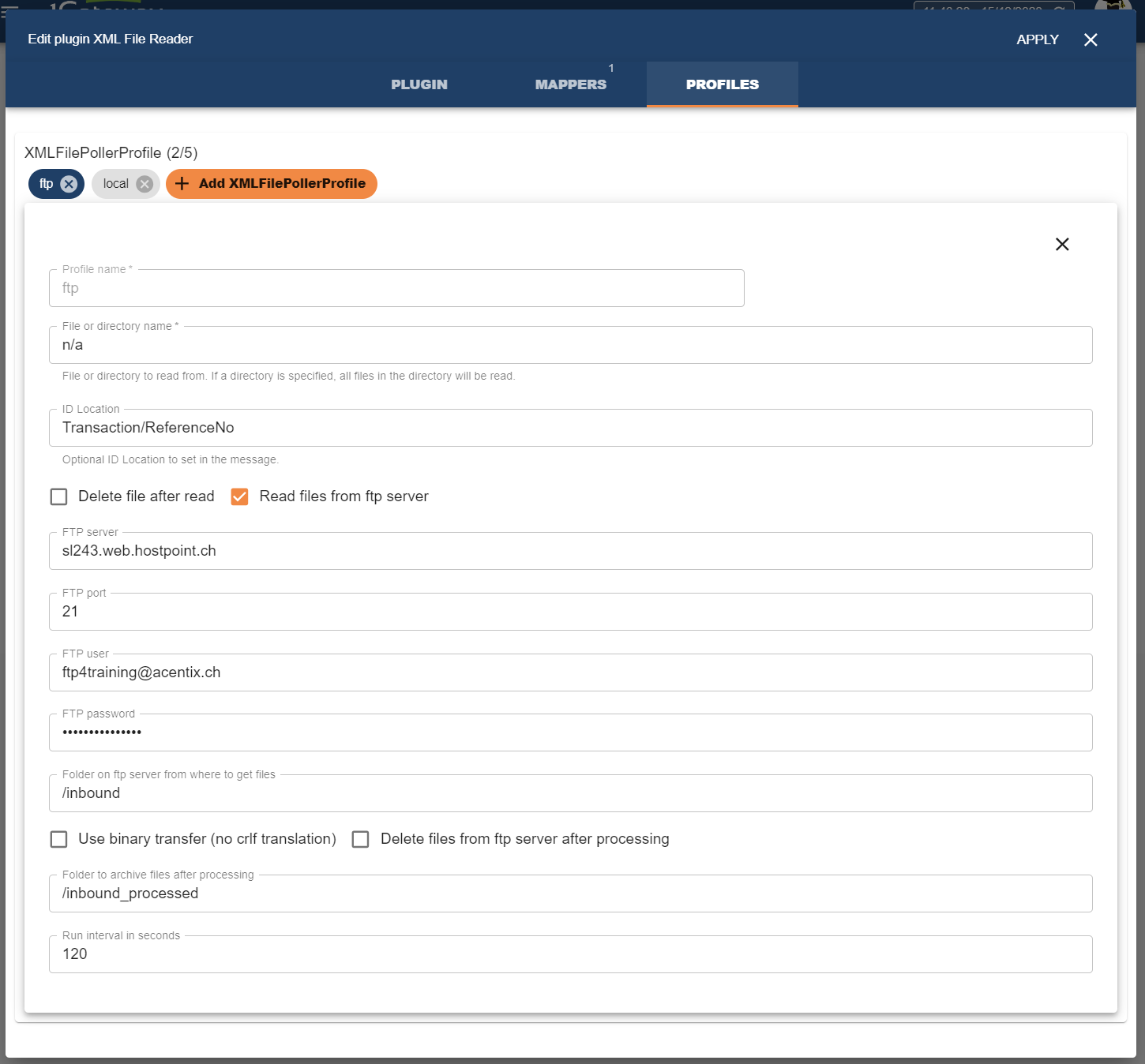 | Delete files from ftp server after processing | true / false | FTP | Delete the file from the ftp server |