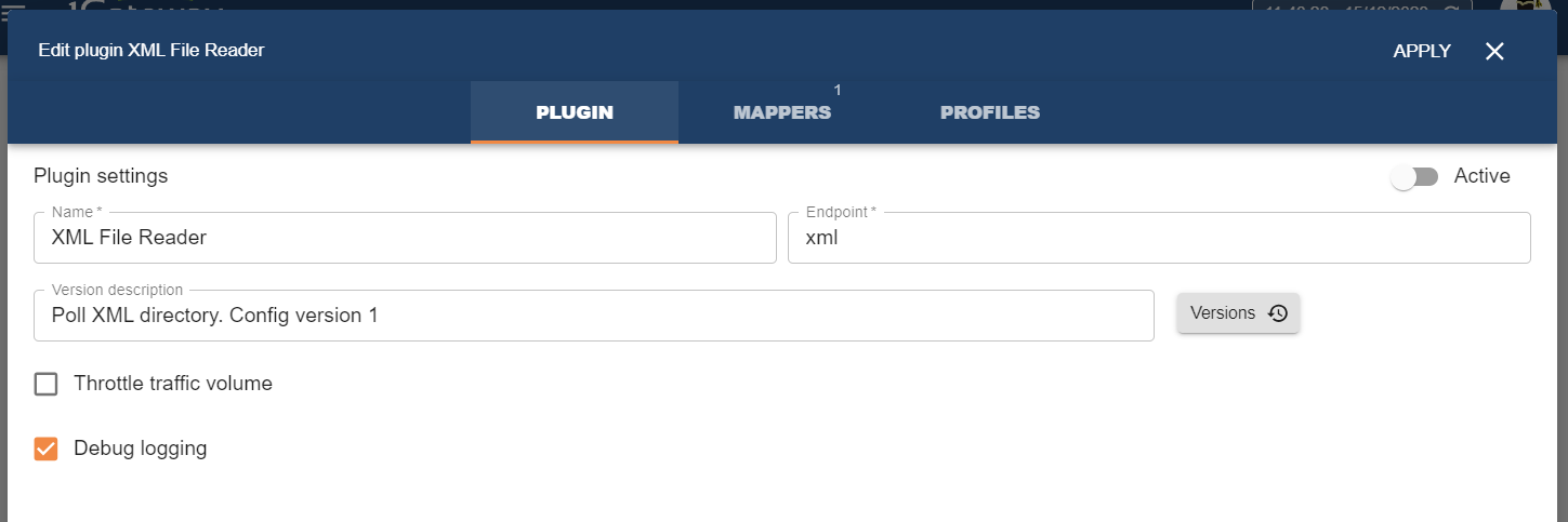 The XML File reader reads XML files and converts the content into a message to be processed by 1Gateway. The configuration can point at a directory where to read files from, at the file itself, or at an ftp server.